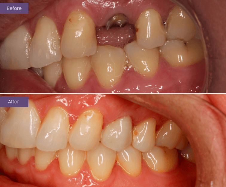 Ronald spent six months in treatment for a tooth removal and immediate placement. He also had a temporary bridge with a dental implant upper right. His treatment cost a total of £2925.